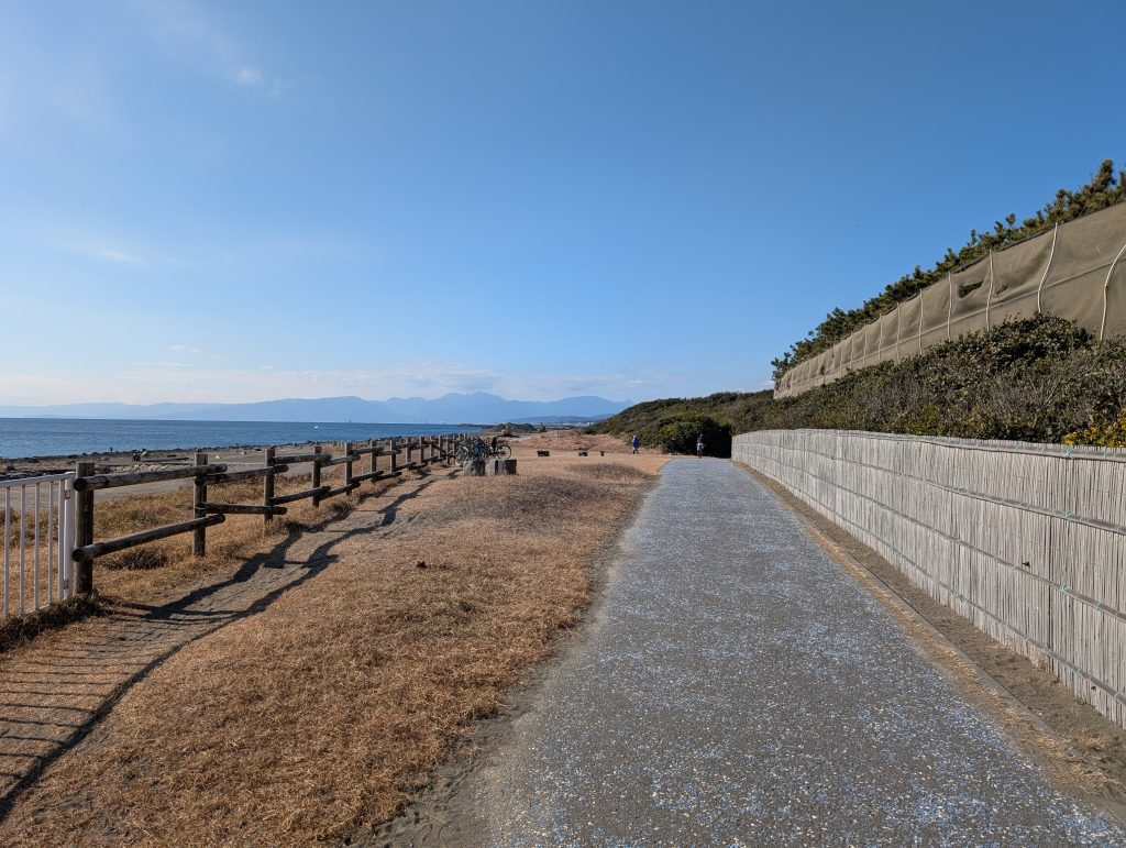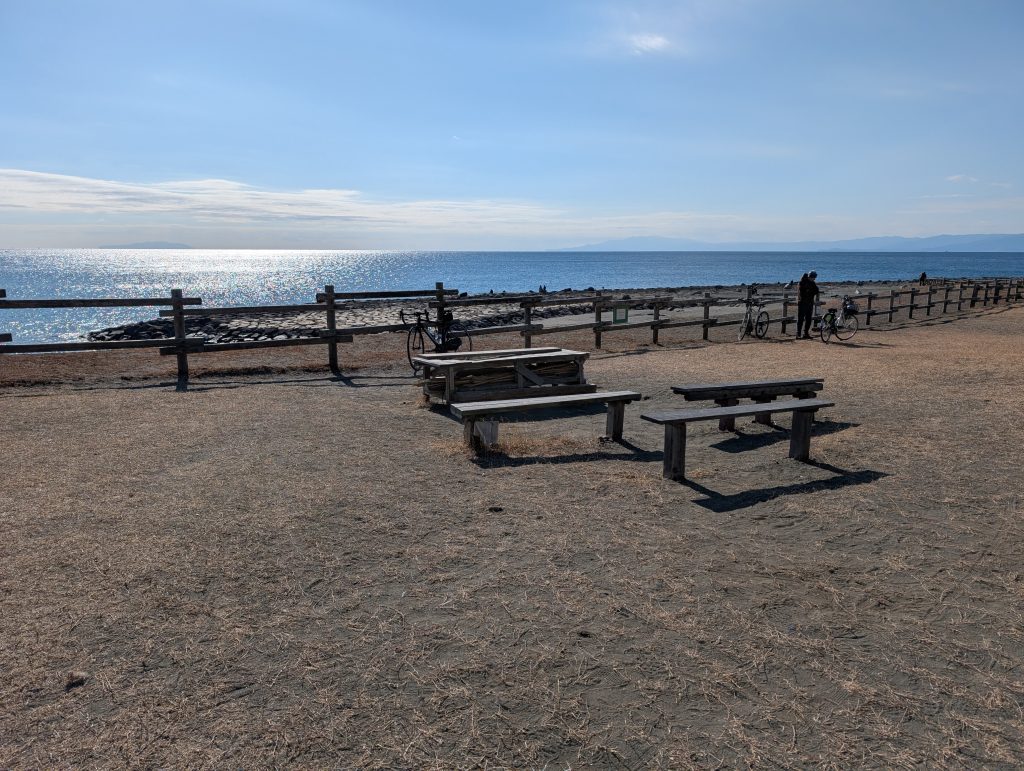 この辺りにベンチもあるので、PINYで調達したパン、香川屋分店のサザンコロッケを湘南海岸サイクリングロードの終点で食べるのも良いプランだと思います。