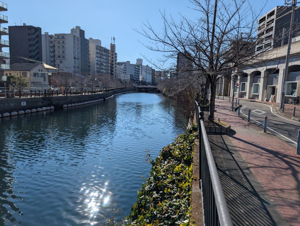 いくつか信号もありますが、桜木町まで川沿いを進みます。