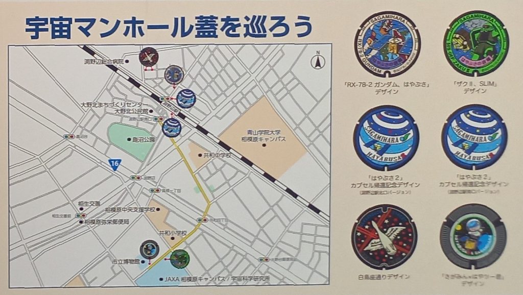 JAXA相模原キャンパスのある淵野辺駅周辺には、宇宙をモチーフにしたガンダムマンホールが設置されることに・・・