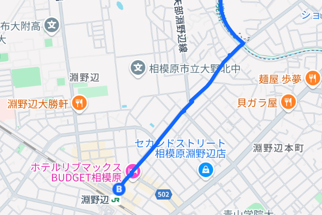 淵野辺駅からはまっすぐ進みます。