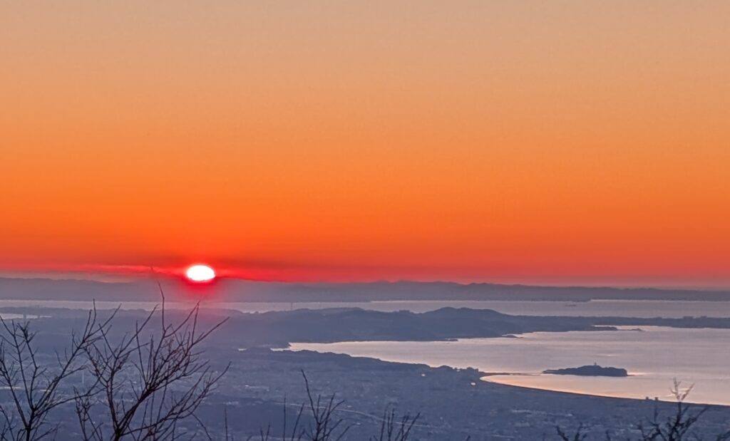 日の出時刻は6:50前後。江ノ島より少し西側の位置からの日の出です。